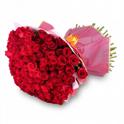 Important: The product photograph is for illustrative purposes only and was taken with an arrangement displayed from one side only. However, arrangements like this 100-rose bouquet are designed in a 360-degree format to ensure a balanced and beautiful presentation from any angle.