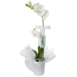 Planta de orquídea de una vara, un regalo ideal para alguien especial. Incluye una dedicatoria impresa en fina papelería.