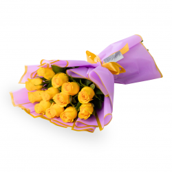 Ramo de rosas en diferentes colores, envuelto en papel de floristería resistente al agua. Incluye una dedicatoria impresa en fina papelería.