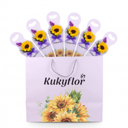 Celebra el DÃa de la Mujer en tu empresa con un elegante ramo de girasol, presentado en un cono plastificado. Este detalle especial es ideal para reconocer y agradecer el compromiso, la dedicación y el talento de cada colaboradora. Incluye una dedicatoria impresa en fina papelerÃa.