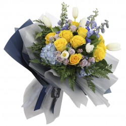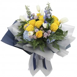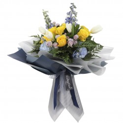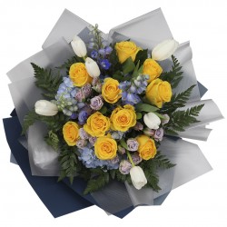 Nuestro ramo de rosas, tulipanes y mini rosas es la combinación perfecta para expresar tu amor y gratitud. Incluye una dedicatoria impresa en fina papelería. Las rosas, tulipanes y mini rosas que lo componen, fueron cuidadosamente cultivados para transmitir emociones duraderas.