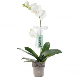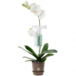 Planta de orquídea de una vara con bellas flores, ideal para regalar a alguien especial.