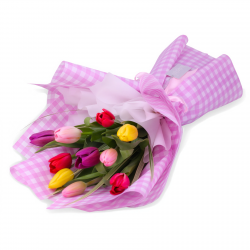 Sorprende con un hermoso ramo de 10 tulipanes , perfectos para regalar en cualquier ocasión. Envuelto en papel de floristerÃa estilo coreano, resistente al agua, en el color de tu elección.