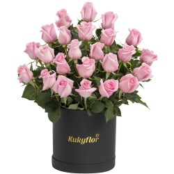 Importante: La fotografía del producto es referencial y ha sido tomada con un arreglo armado de una sola cara para fines fotográficos. Sin embargo, los arreglos como esta sombrerera de 24 rosas , son diseñados en un formato de 360 grados para garantizar una presentación equilibrada y hermosa desde cualquier ángulo.